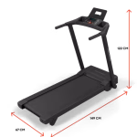 The treadmill’s 120cm x 41cm belt offers a smooth and secure surface for confident strides. Its slim, non-folding design suits home users seeking space efficiency without sacrificing running room.